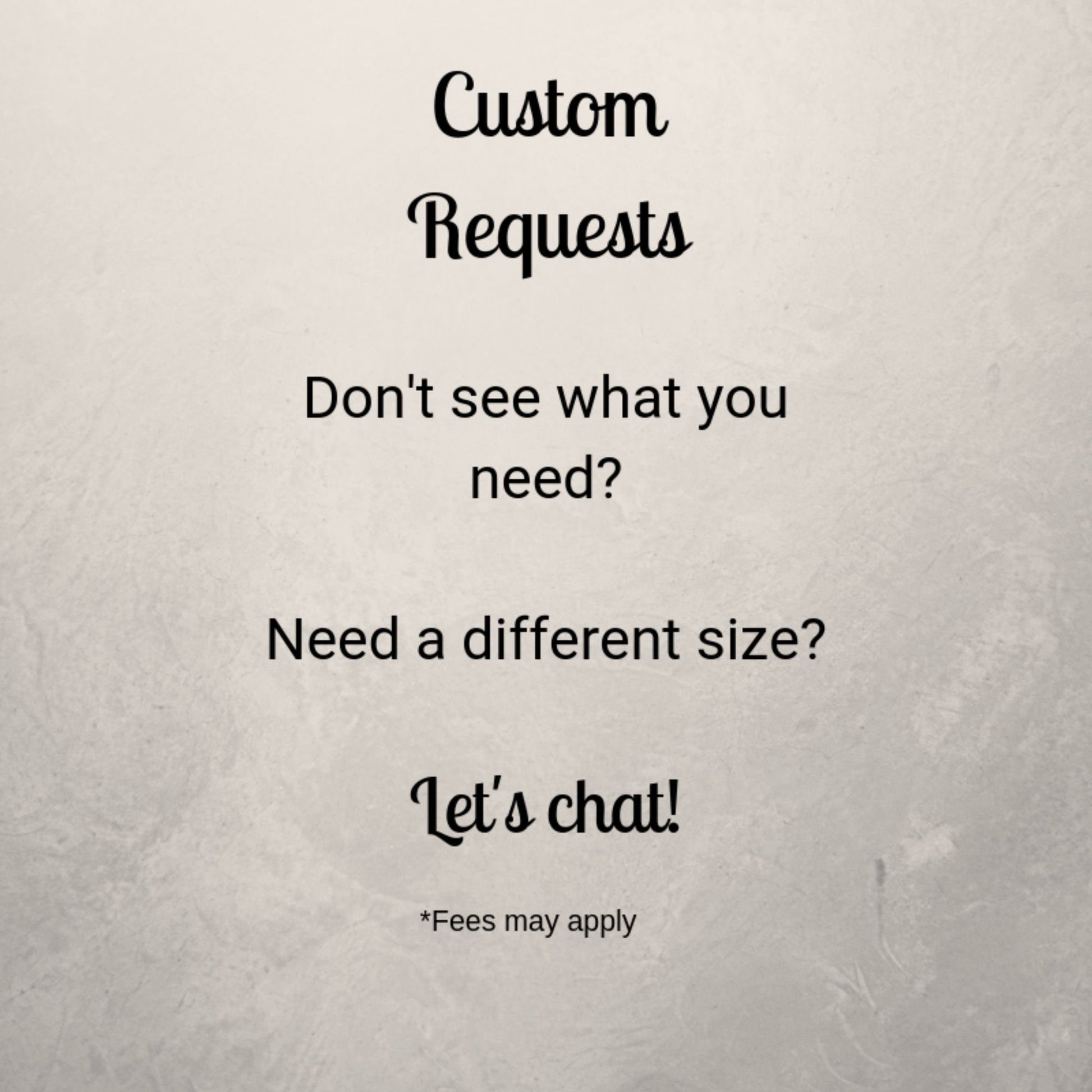 I am happy to create custom products and/or sizes. If you'd like something different then what you see please reach out to me via the Contact page, I am happy to help.